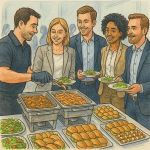 Организация питания для большой группы людей — сотрудники компании, партнёры, гости мероприятия — всегда сложнее, чем кажется. Нужно, чтобы еда