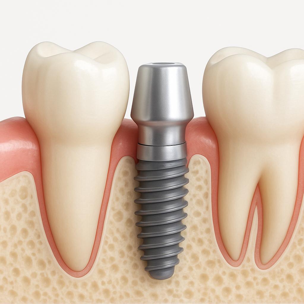 Чаще всего используется медицинский титан или его сплавы — они не вызывают аллергии и хорошо срастаются с костной тканью. Появляются и циркониевые импланты — эстетично, но применяются не во всех клинических ситуациях.