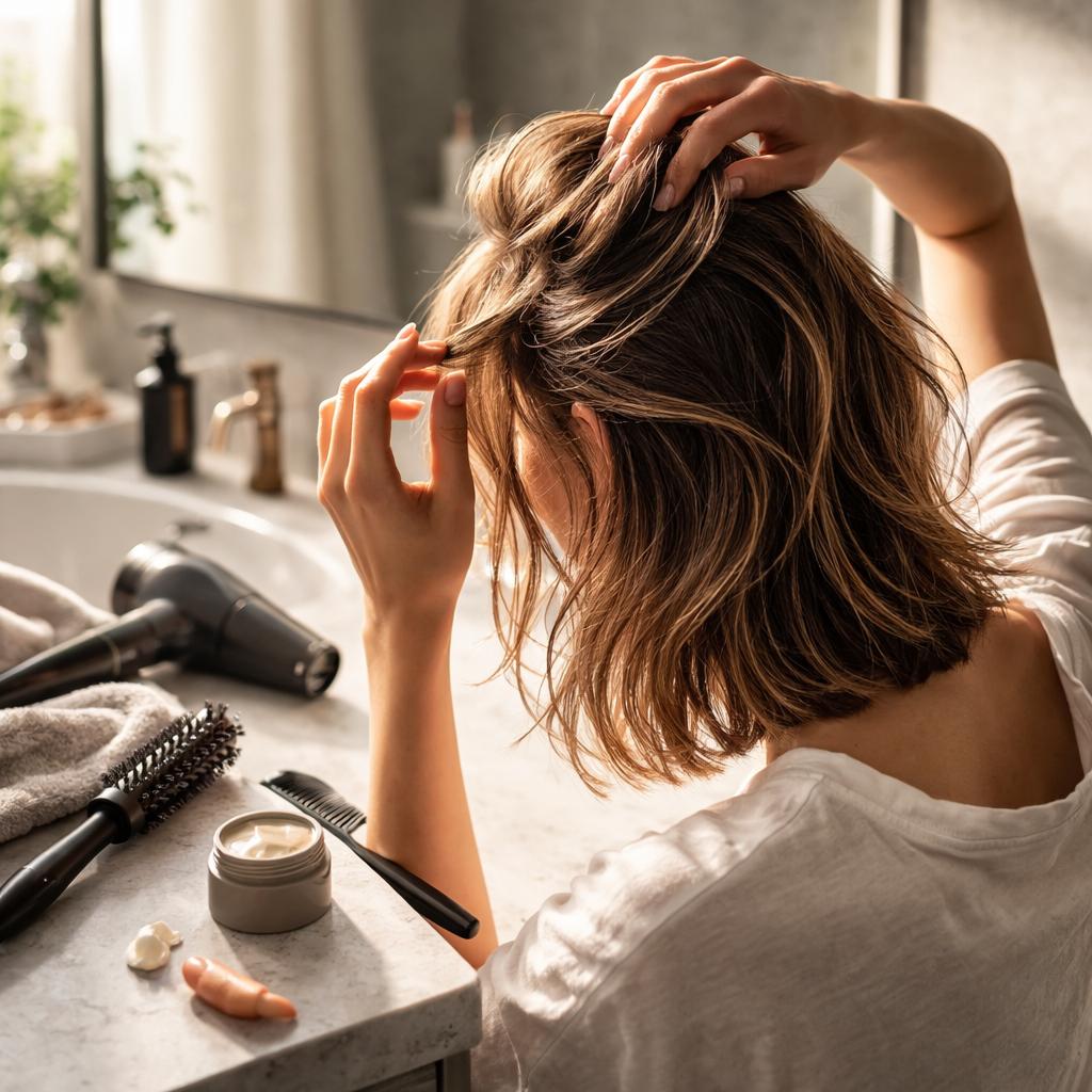 Многие наносят всё подряд близко к коже головы: несмываемый уход, термозащиту, масло, потом ещё стайлинг. В итоге корни блестят уже через пару часов.
