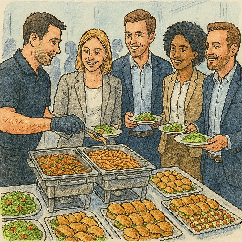 Организация питания для большой группы людей — сотрудники компании, партнёры, гости мероприятия — всегда сложнее, чем кажется. Нужно, чтобы еда была вкусной, свежей, в достаточном объёме, чтобы никто не оставался голодным, но и не было перерасхода. Часто организаторы сталкиваются с такими проблемами: